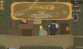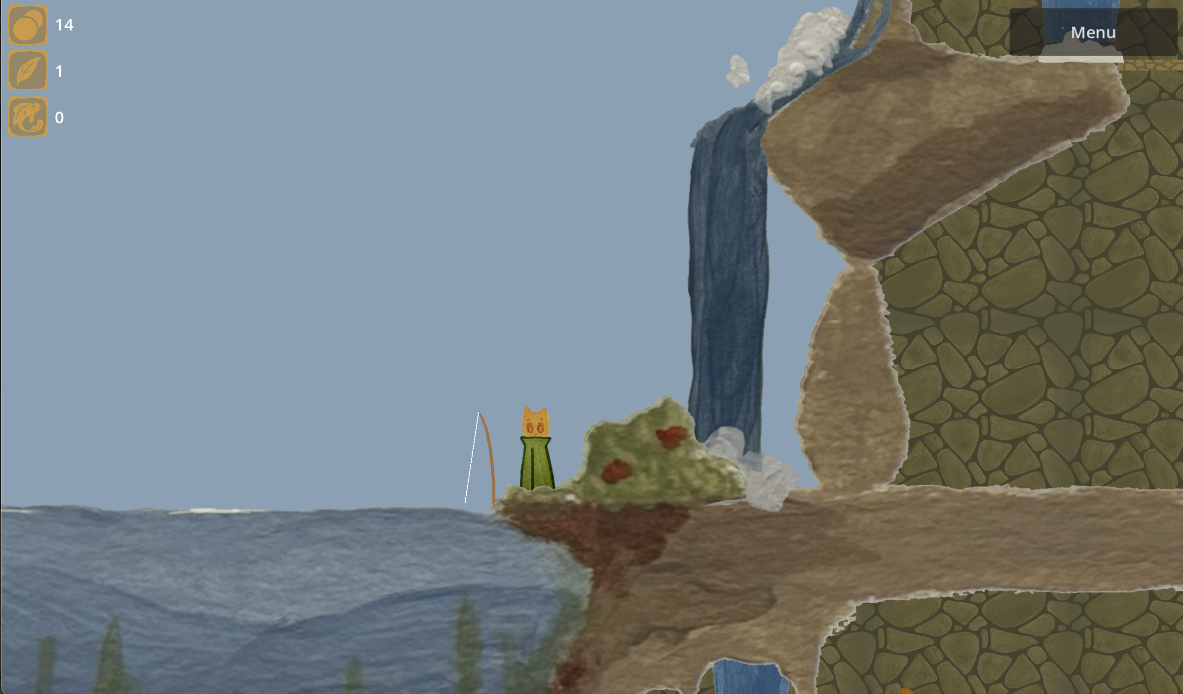 This is a short exploration/platformer/RPG about a cat made of sand looking for revenge against the crows by stealing their feathers. Search the island, complete platforming sections and talk to a range of cat islanders to complete your quest!
